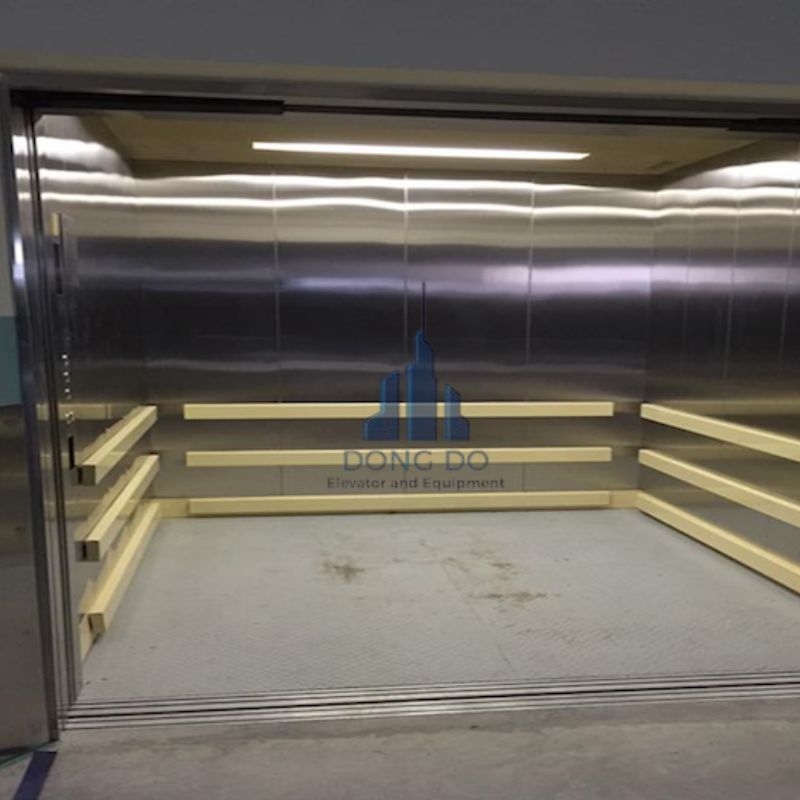 Khách hàng có thể lựa chọn kiểu cửa mở tim 4CO hoặc cửa xếp, tích hợp thêm cửa chống cháy theo yêu cầu công trình. Kích thước cabin được thiết kế linh hoạt để phù hợp với nhiều loại hàng hóa.